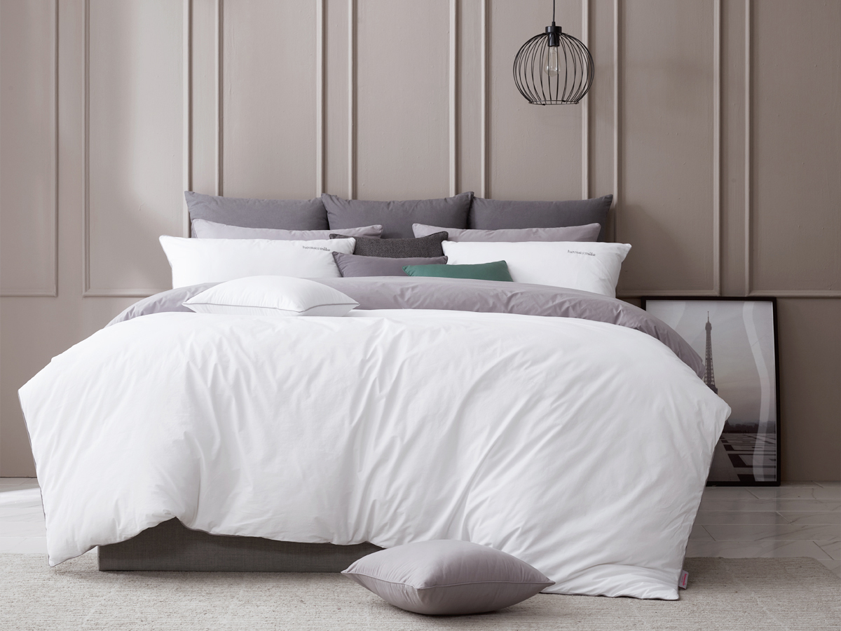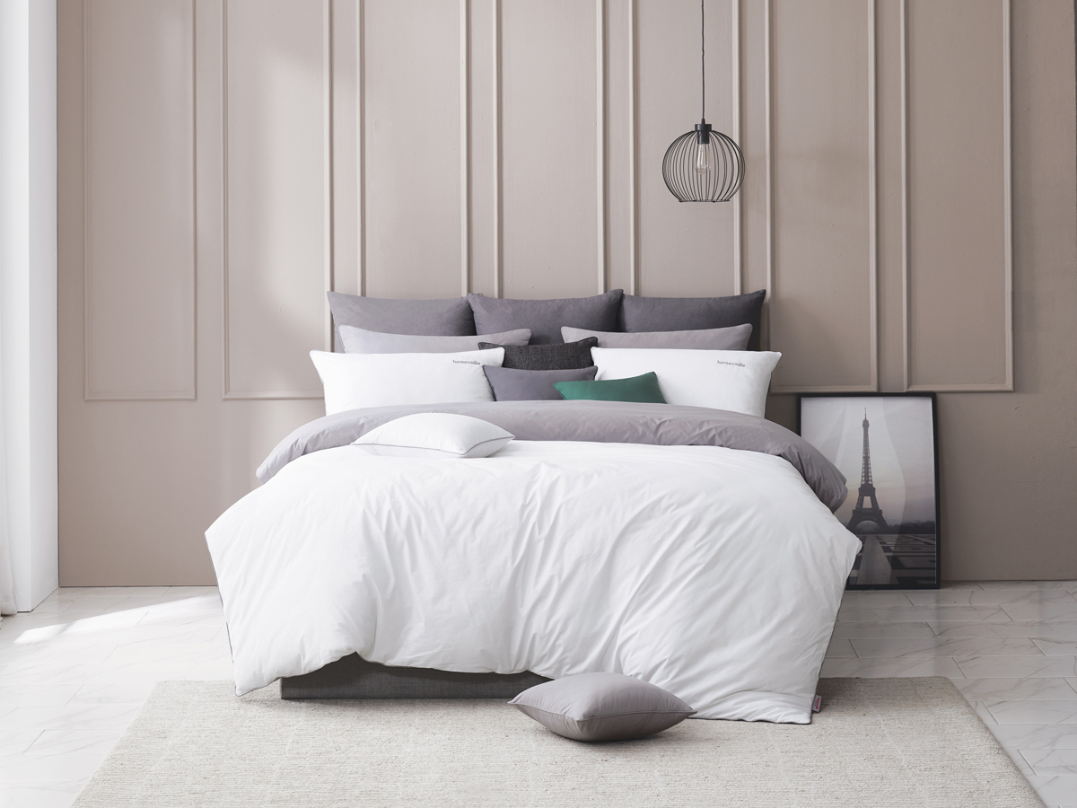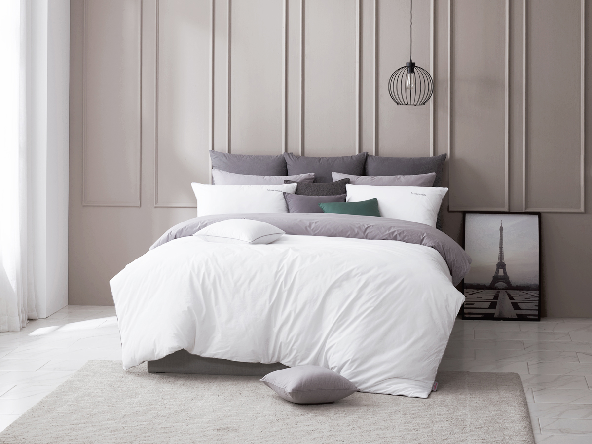 앞면은 화이트 몸에 닿는 뒷면은 그레이로 매치하여 깔끔하고 부담없이 사용 할 수 있는 침구입니다.