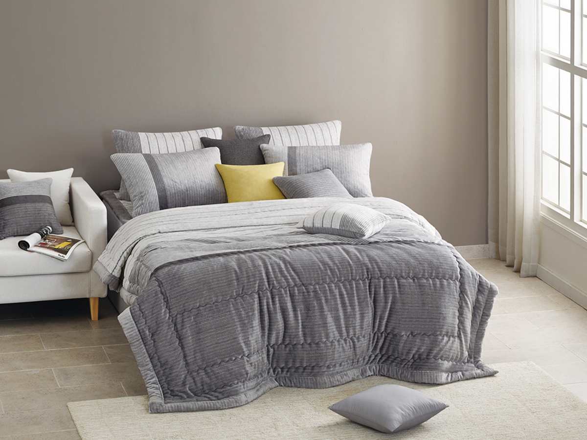 그레이 컬러의 톤온톤 색감과 스트라이프 패턴이 들어간 세련되고 모던한 침구입니다.