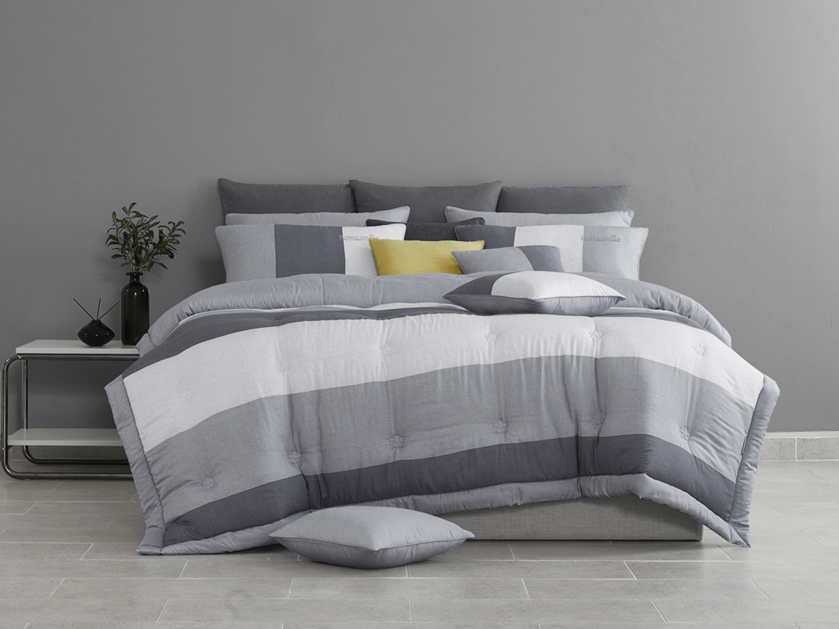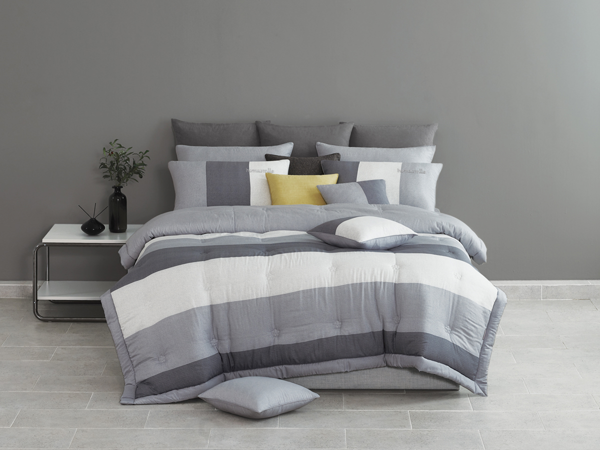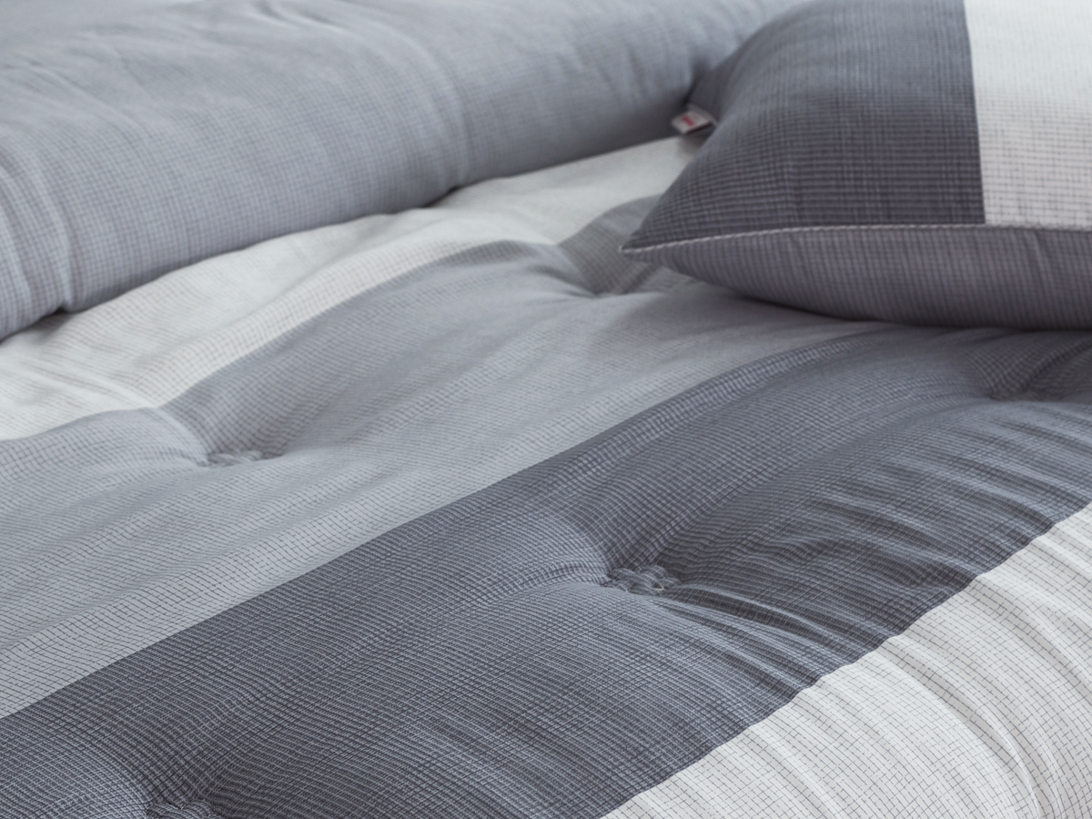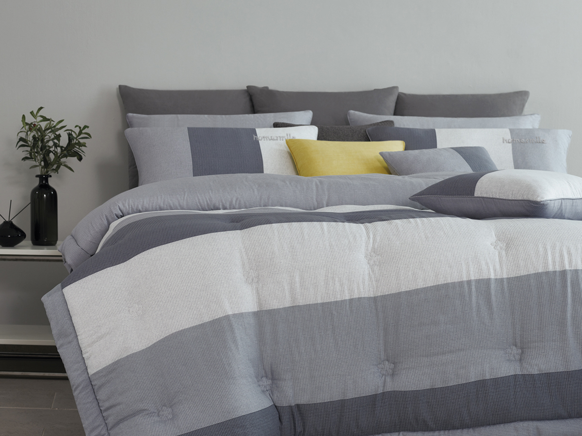 모던한 텍스처를 그레이 톤으로 컬러 매치해서 세련된 느낌을 주는 침구입니다.