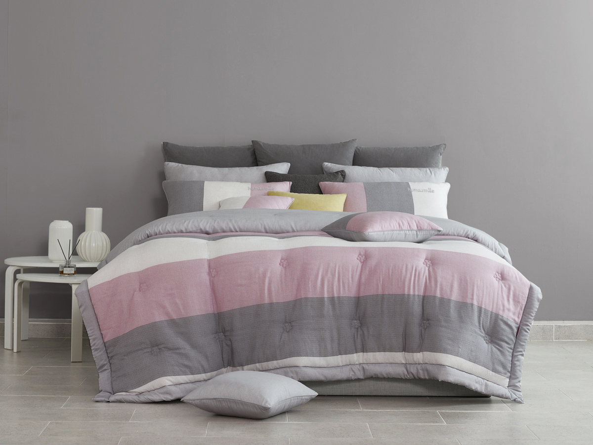 모던한 텍스처와 화사한 핑크, 차분한 그레이 컬러를 이용하여 스트라이프로 표현한 패턴으로