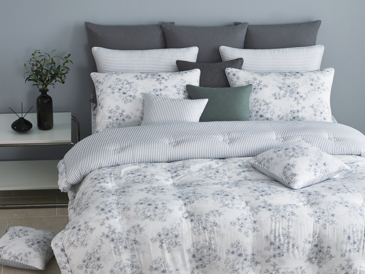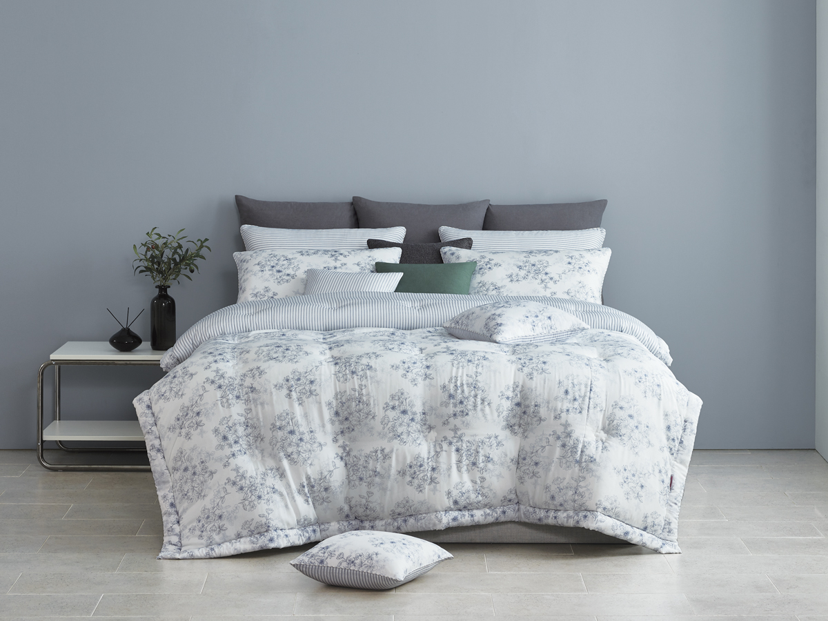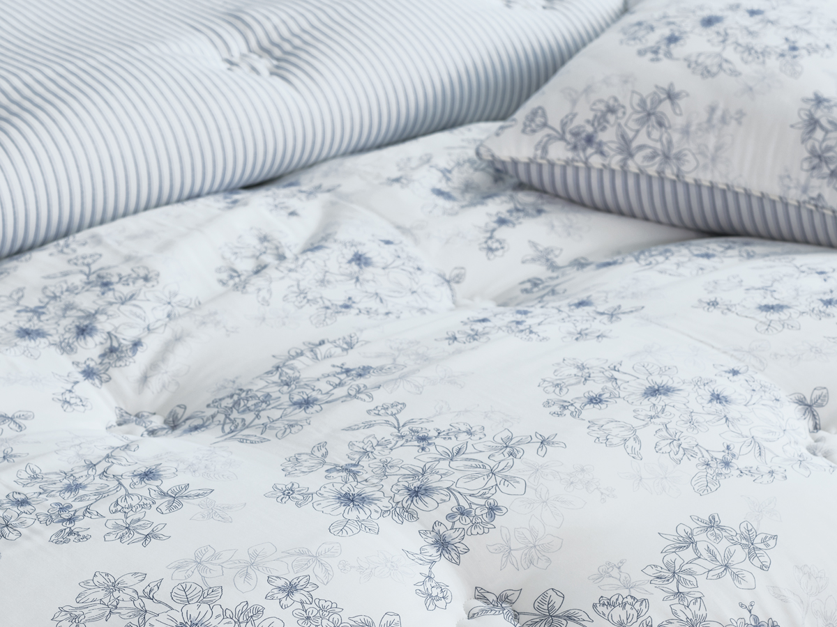 25년에 유행하는 뜨왈 블루 플라워 패턴이 화사하면서 청량감을 주는 침구입니다.