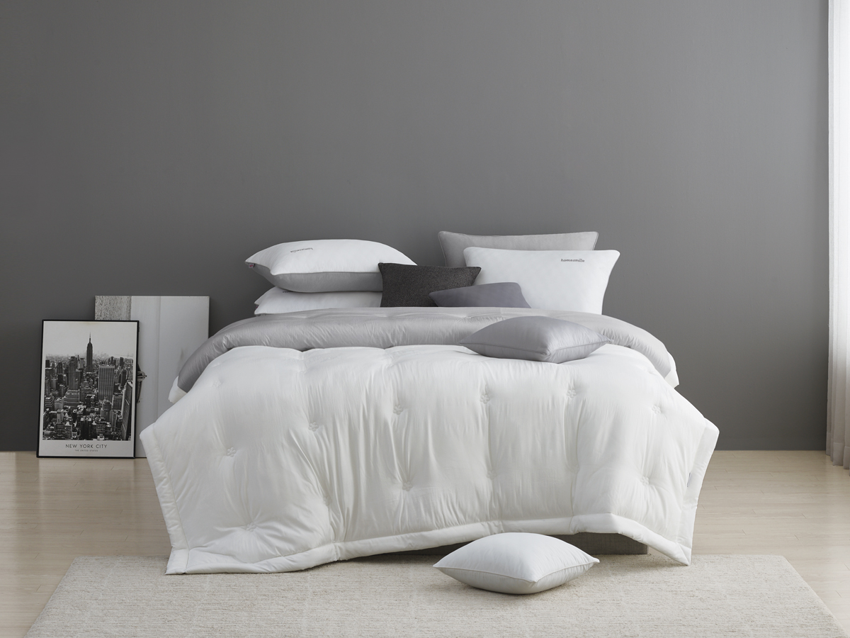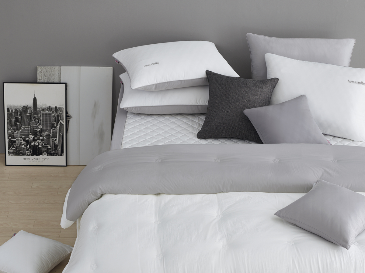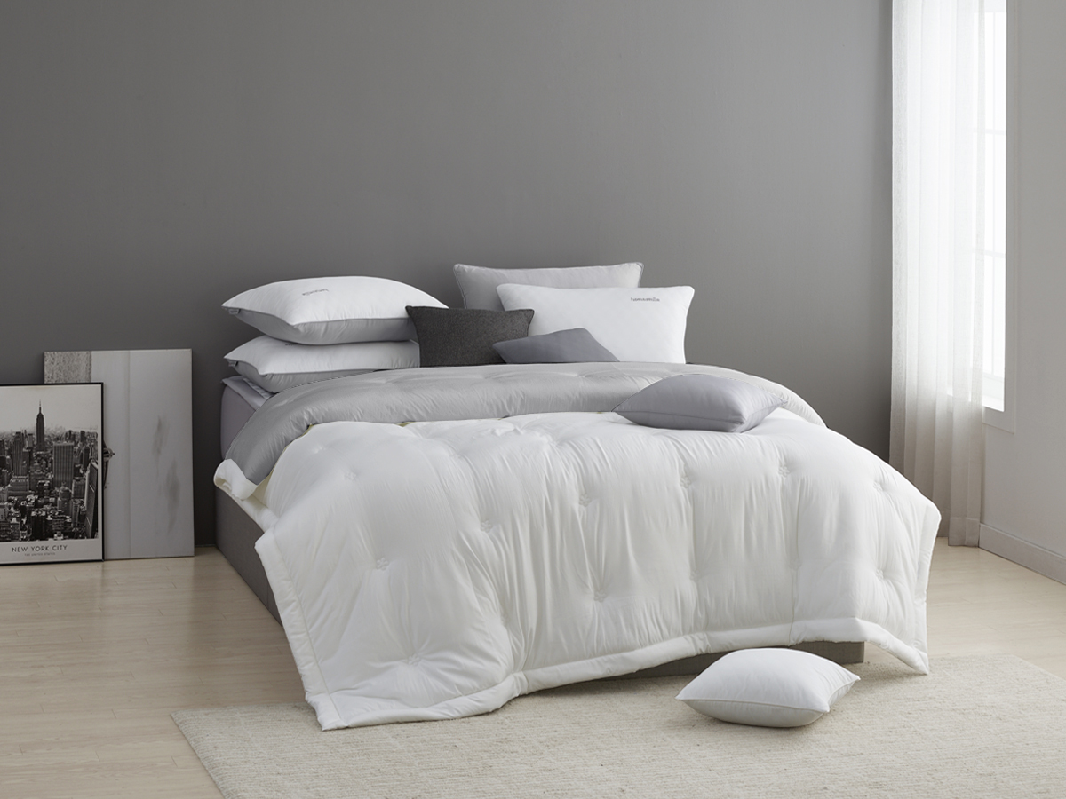 모던한 솔리드 원단으로 화이트와 그레이 컬러를 앞뒤로 매치해 리버서블이 가능한 침구입니다.