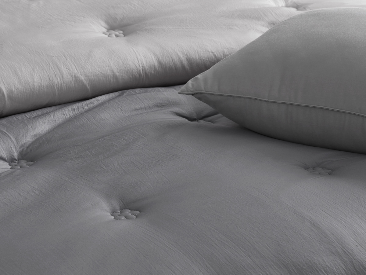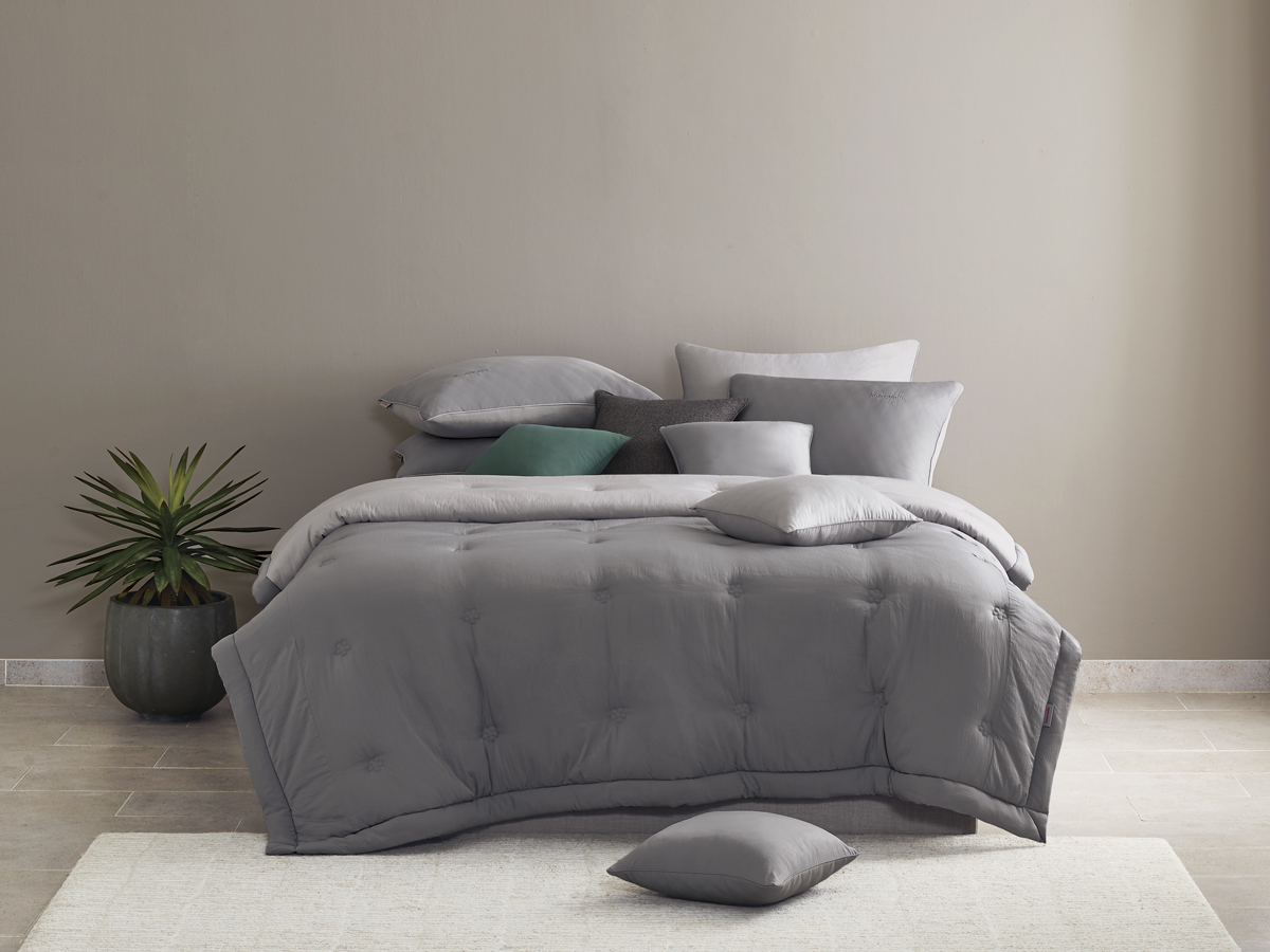 모던한 솔리드 원단으로 차콜그레이와 그레이 컬러를 앞뒤로 매치해 리버서블이 가능한 침구입니다.