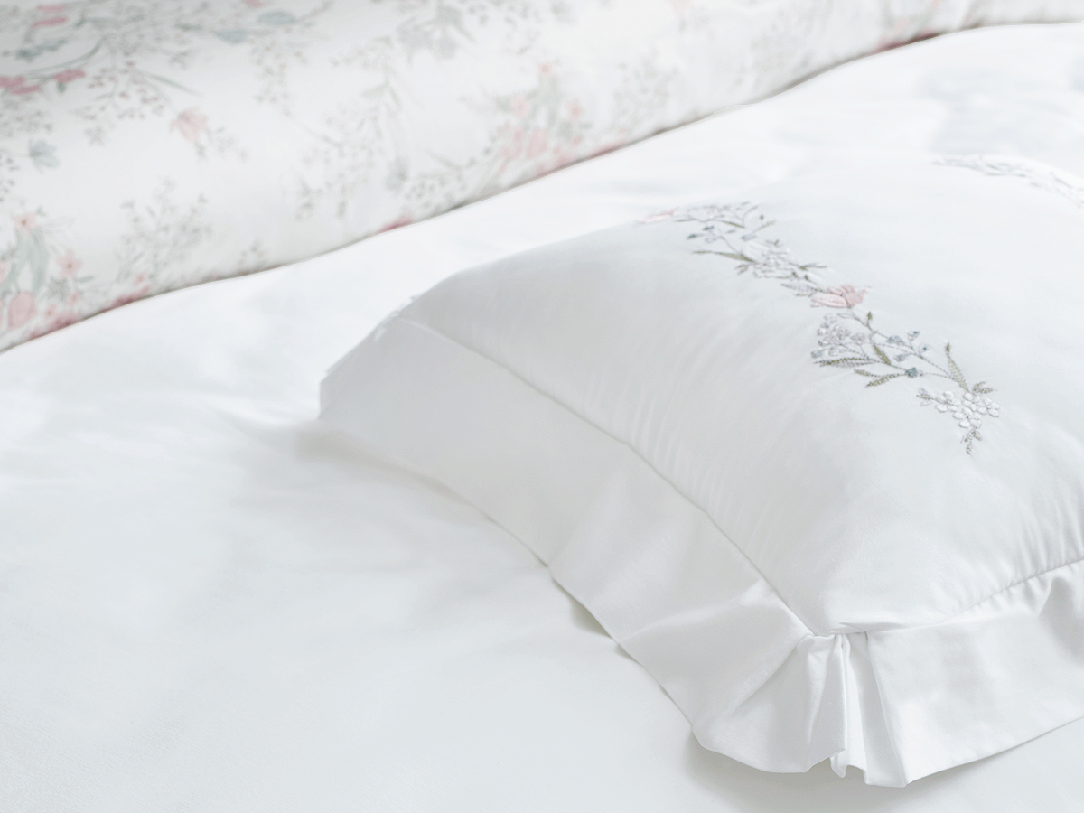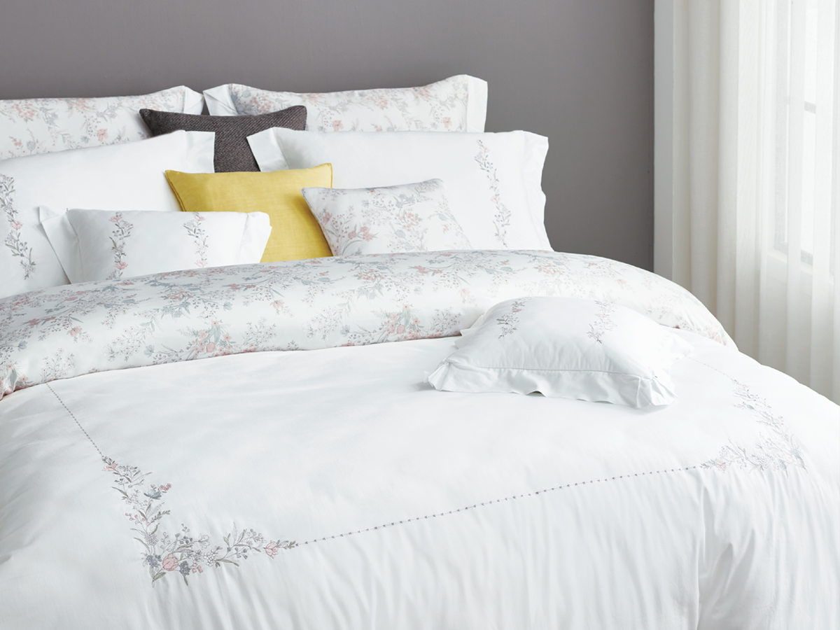 가장자리는 겹날개 디테일로 우아하게 마감하여 호텔 라이크 무드를 완성합니다.