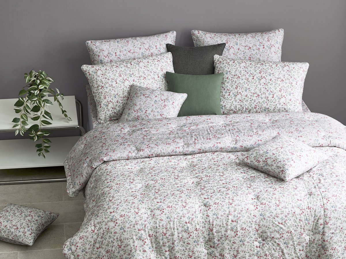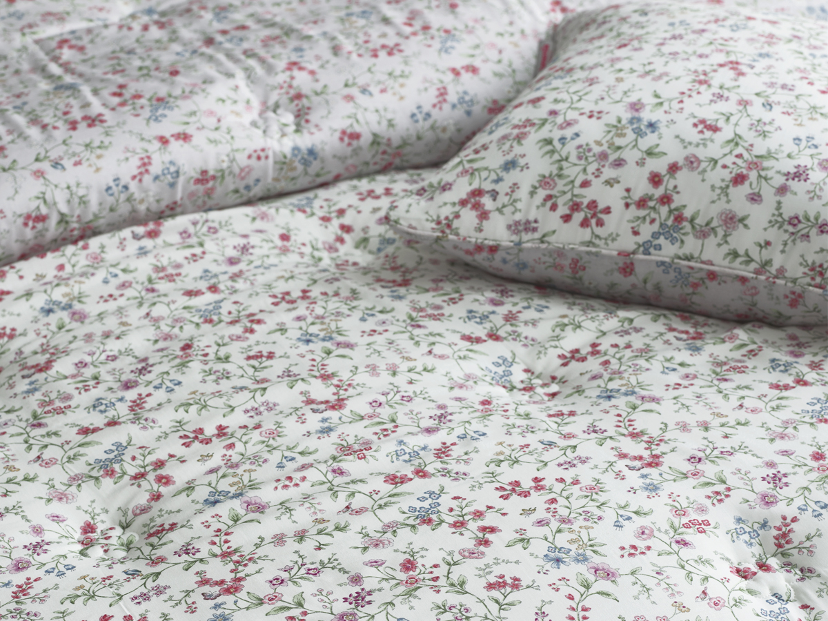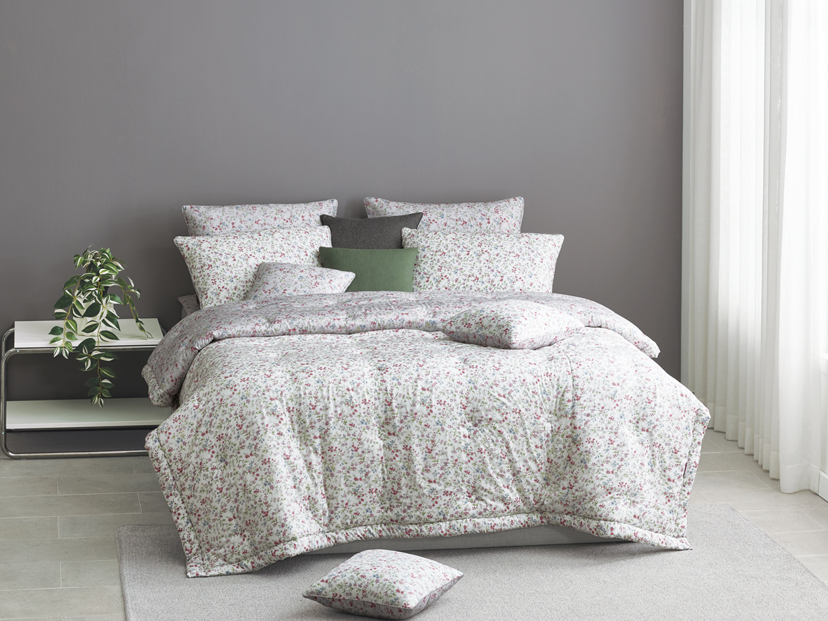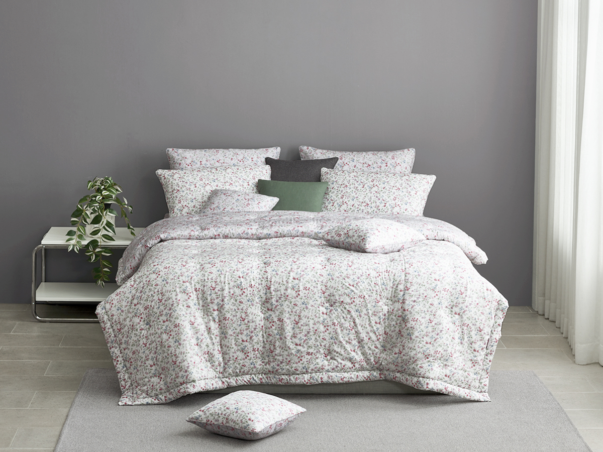 화려하지 않으면서도 다채로운 컬러의 작은 꽃들이 조화를 이루어, 침실을 화사하고 생기 있는 공간으로 바꿔줍니다.