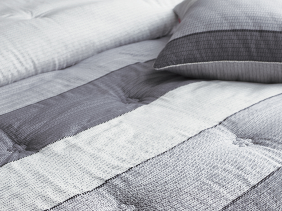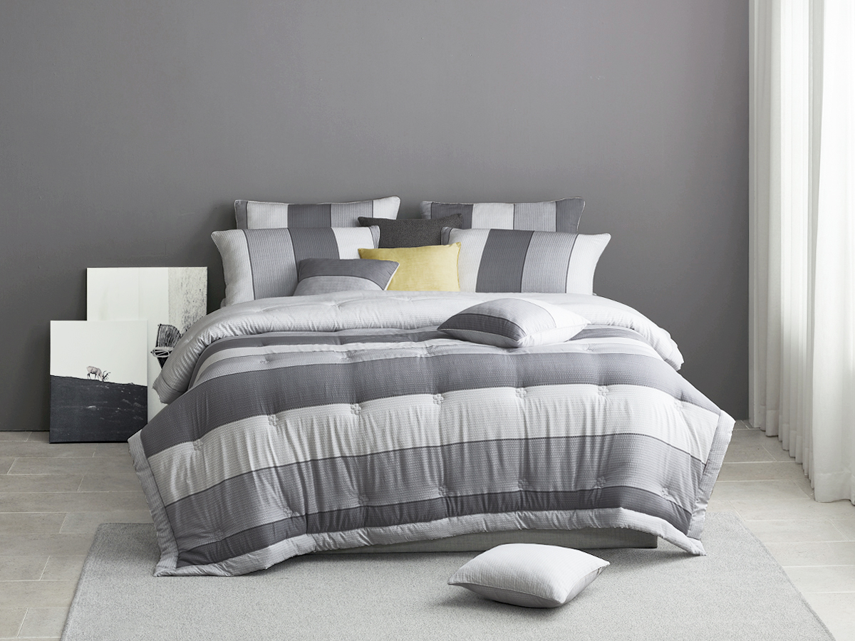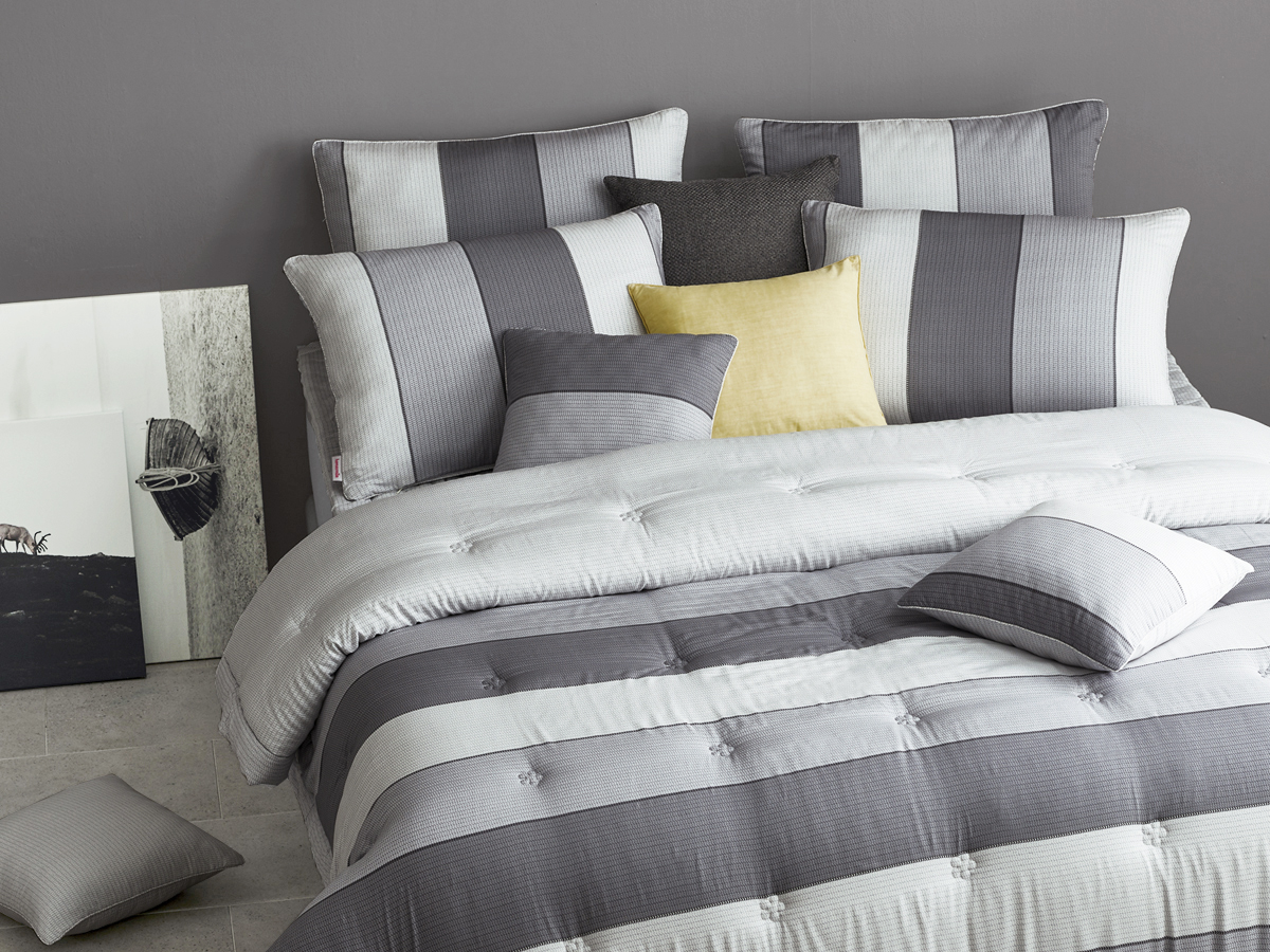 모던한 텍스처를 그레이 톤으로 컬러 매치해 세련된 분위기를 완성한 침구입니다.