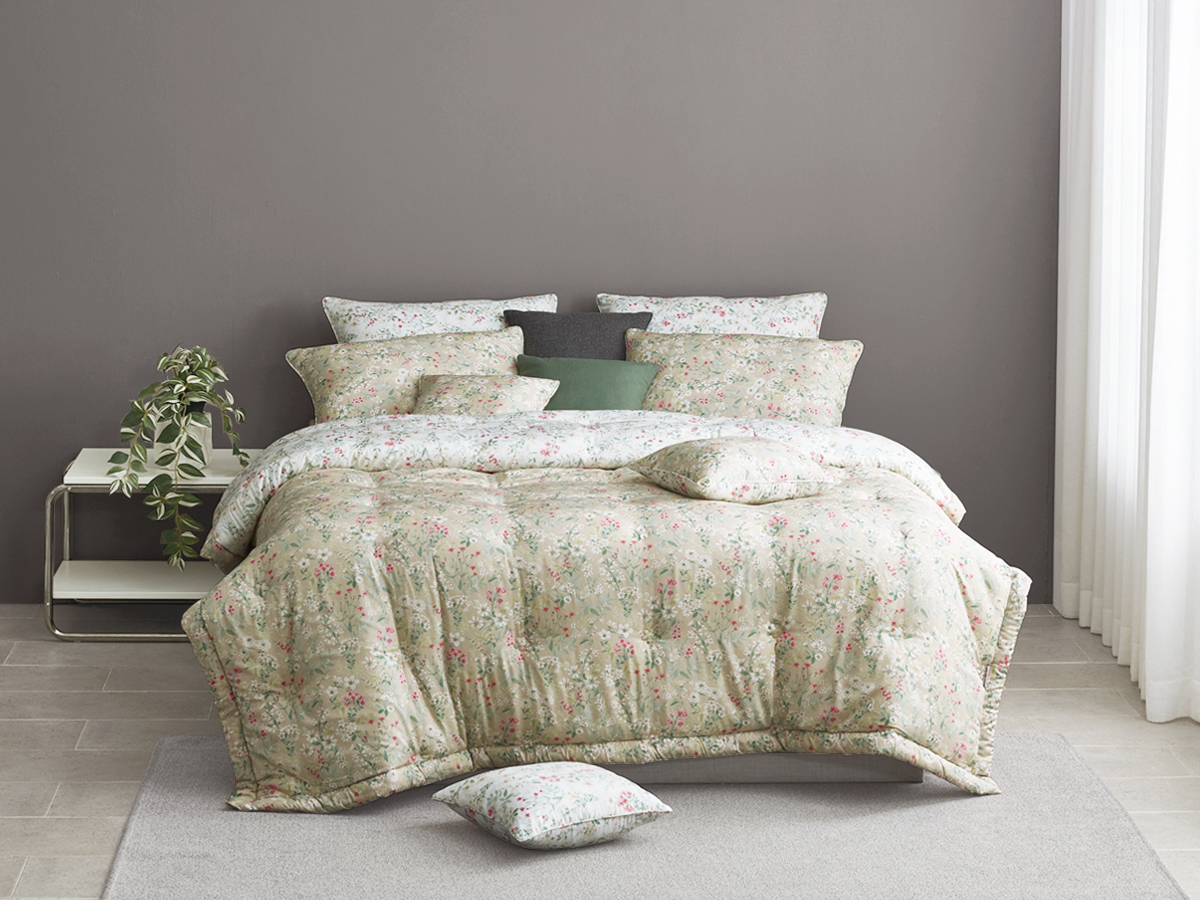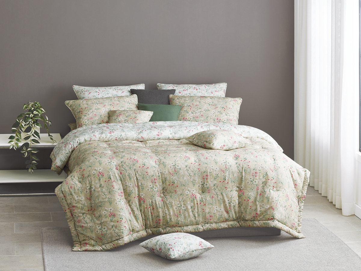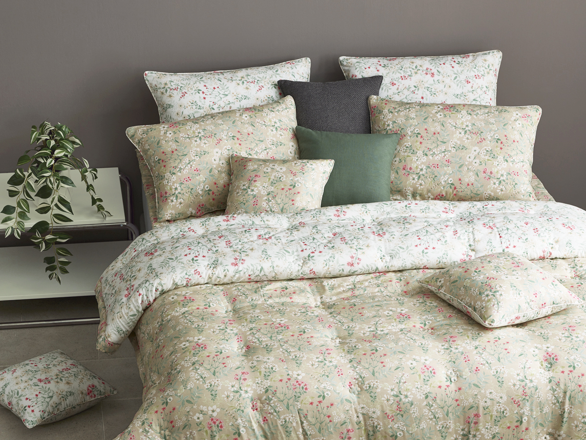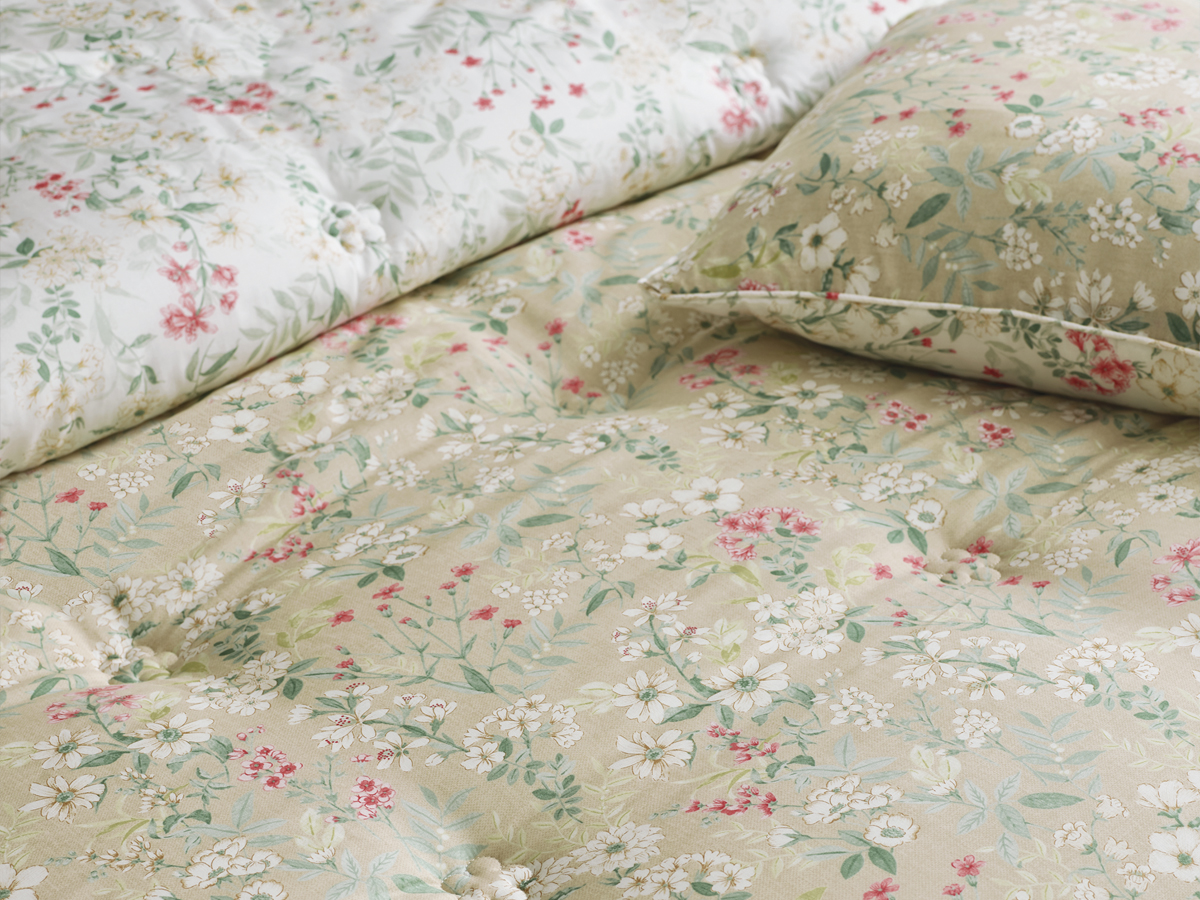 따뜻한 베이지 바탕 위에 수채화처럼 은은하게 번진 플라워 패턴이 내추럴하면서도 아늑한 분위기를 선사합니다.