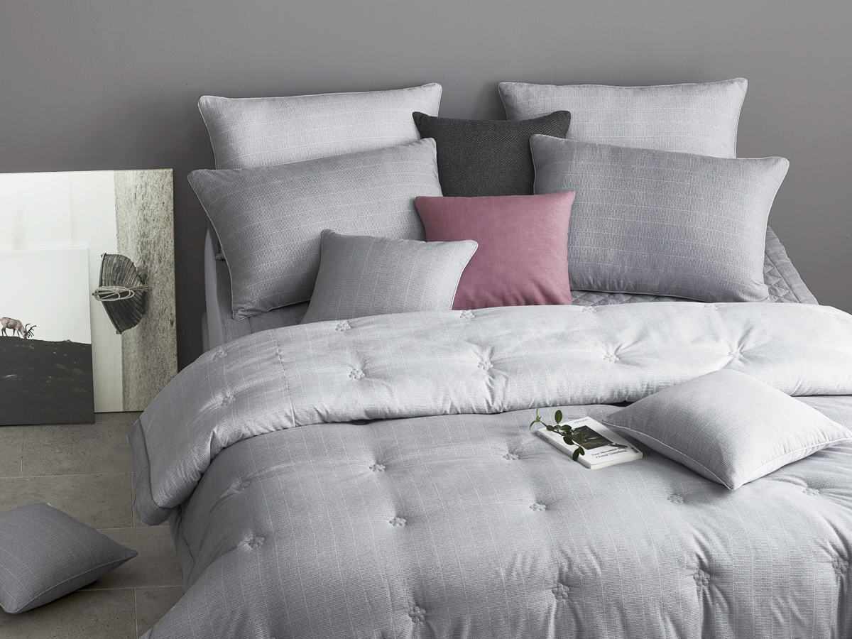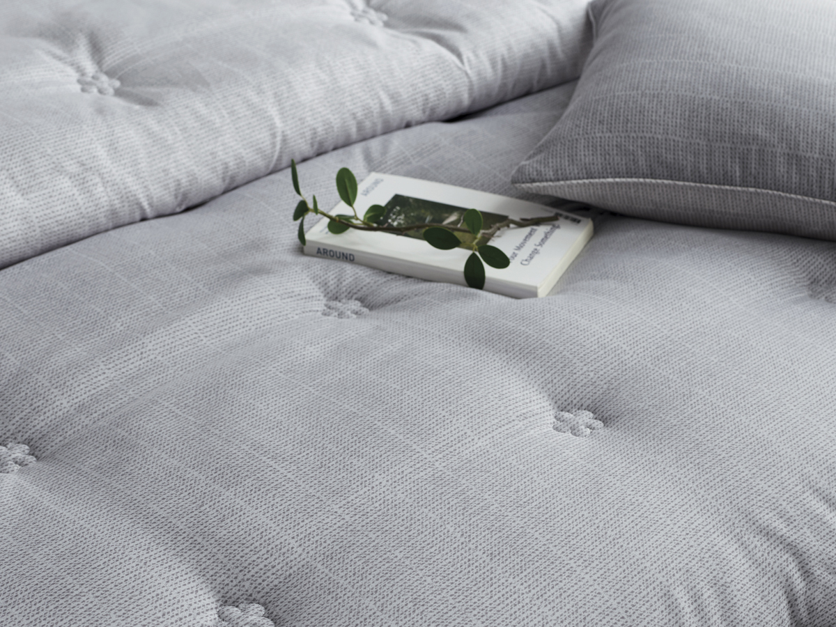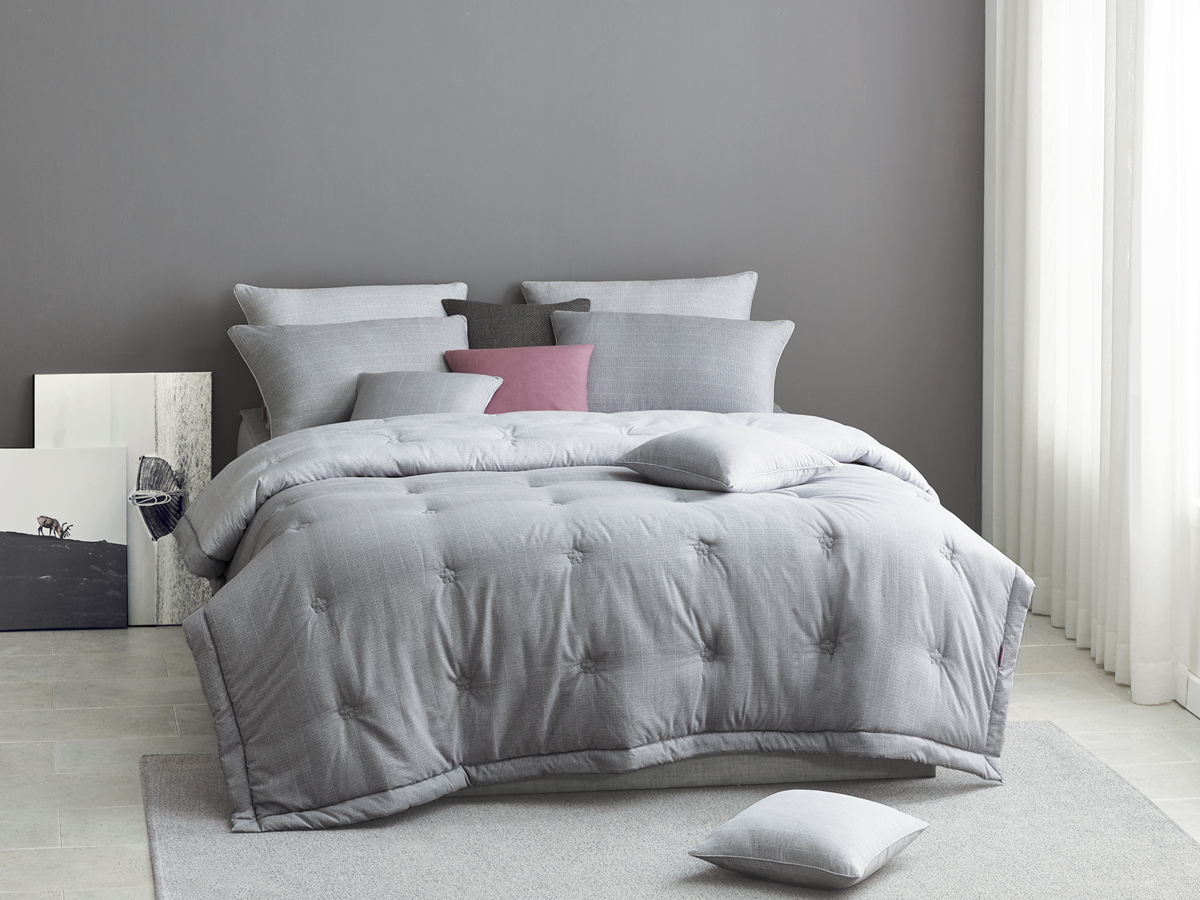 모던한 라이트 그레이 톤에 잔점 텍스처를 촘촘히 더해 직조감처럼 보이는 미니멀 패턴의 침구입니다.