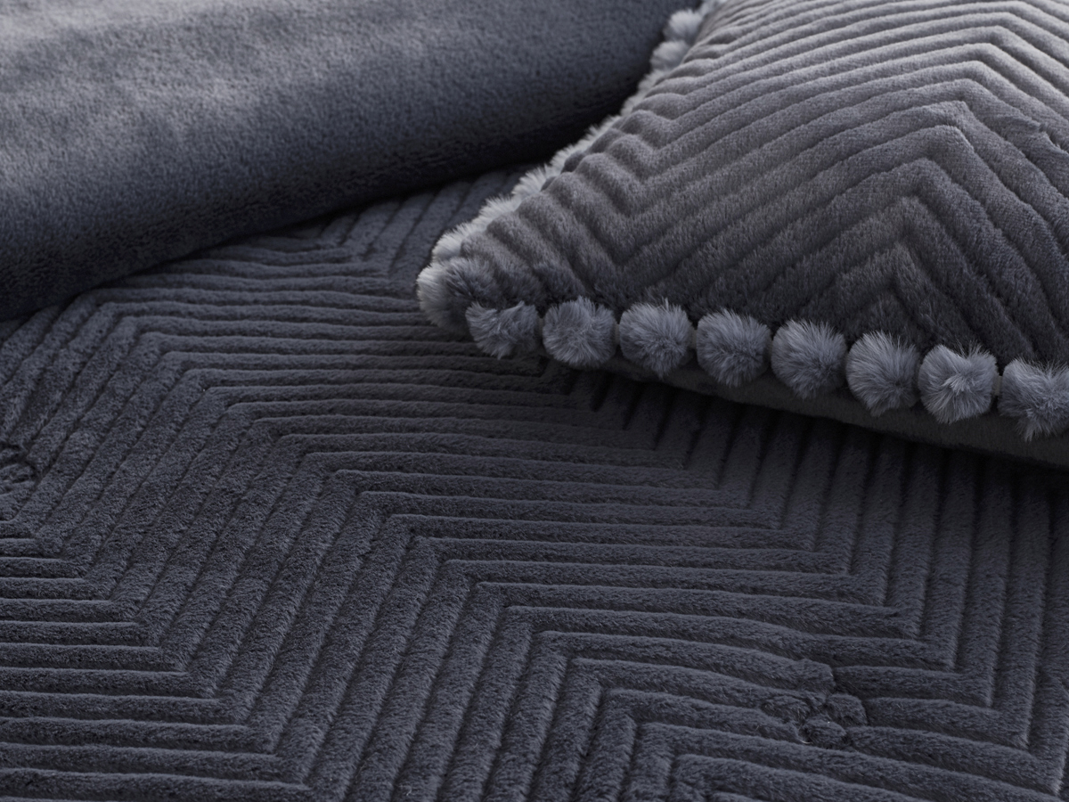 고밀도의 극세사가 선사하는 부드러움 위에, 갈매기 모양의 기하학 패턴을 정교하게 깎아내어 세련된 입체감을 더했습니다.