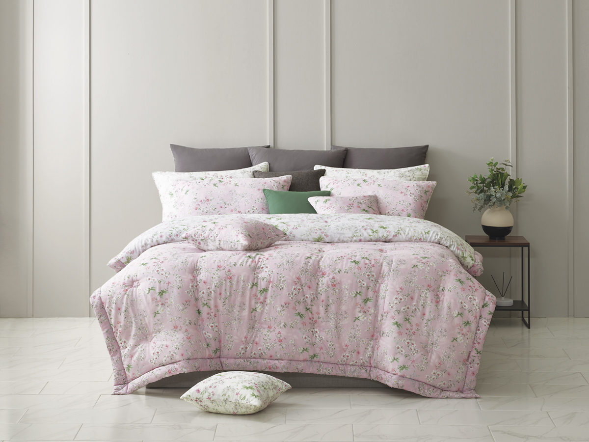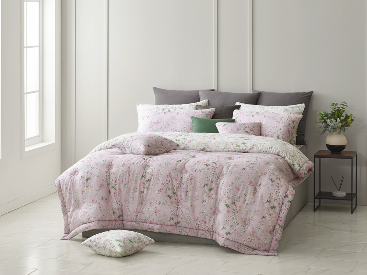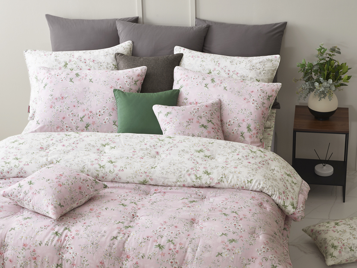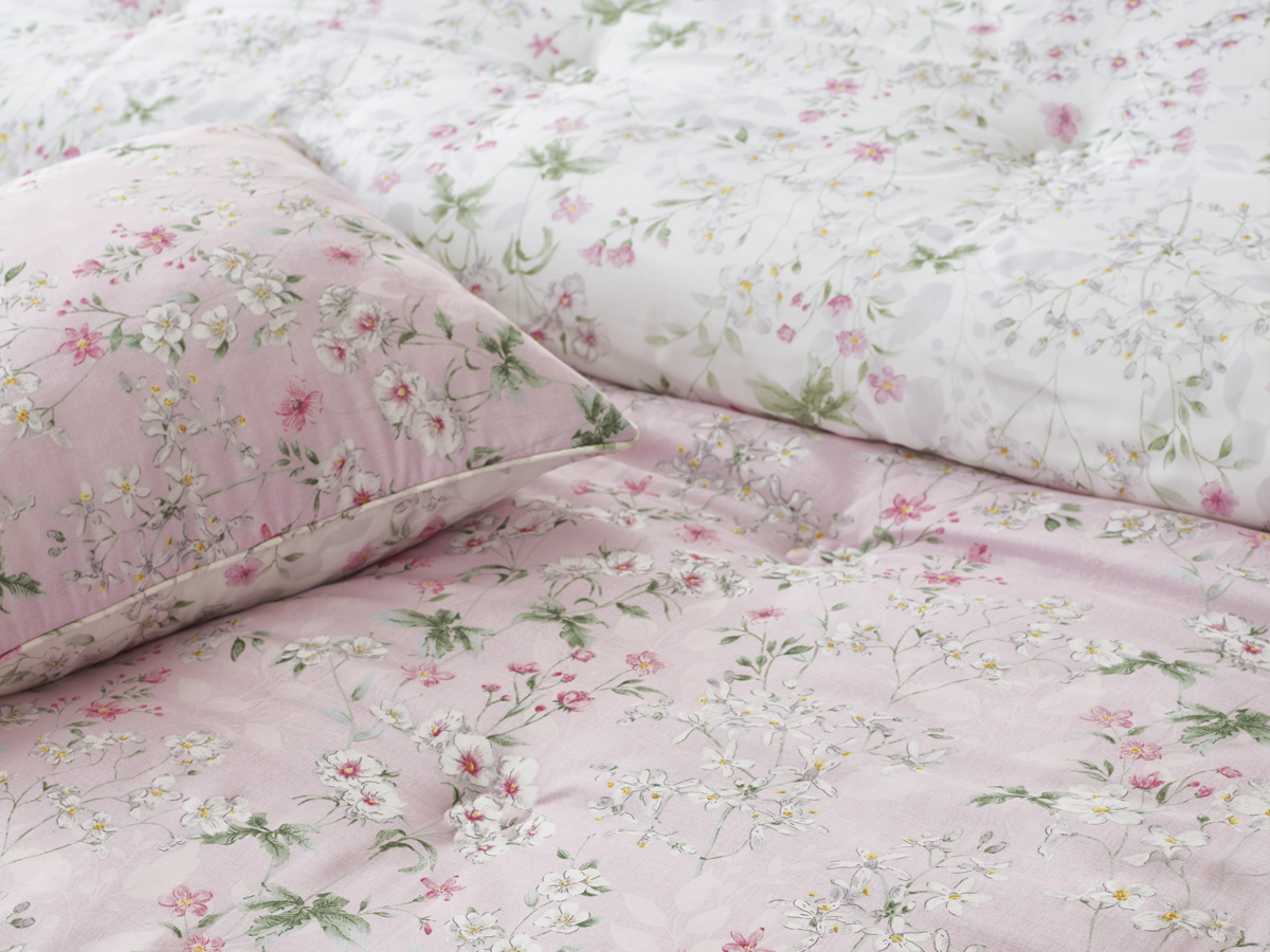 이불 전체에 펼쳐진 플라워 패턴은 과하지 않으면서도 충분히 풍성한 인상을 주도록 디자인하였습니다.