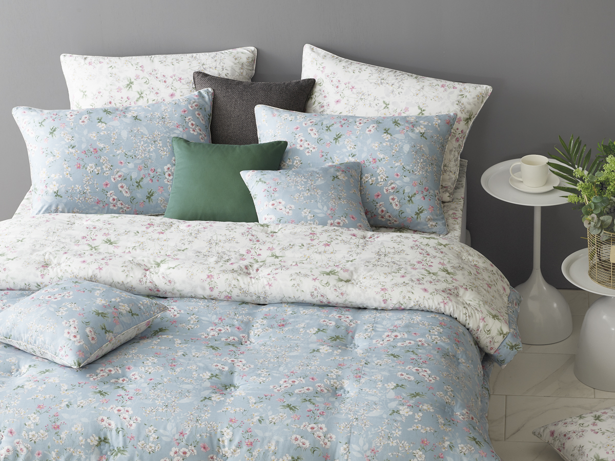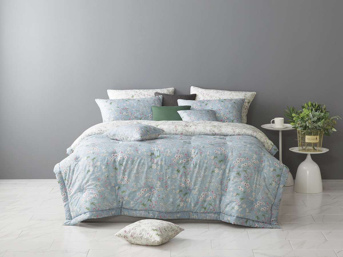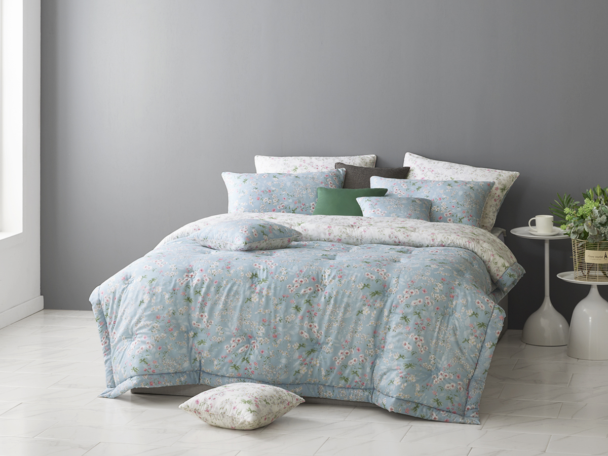 이 침구는 맑고 차분한 블루 컬러 위에 섬세한 플라워 패턴을 더해, 청량하면서도 부드러운 휴식의 분위기를 완성해 주는 모달 침구입니다.