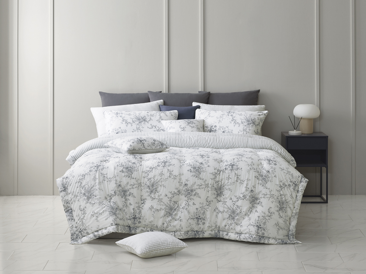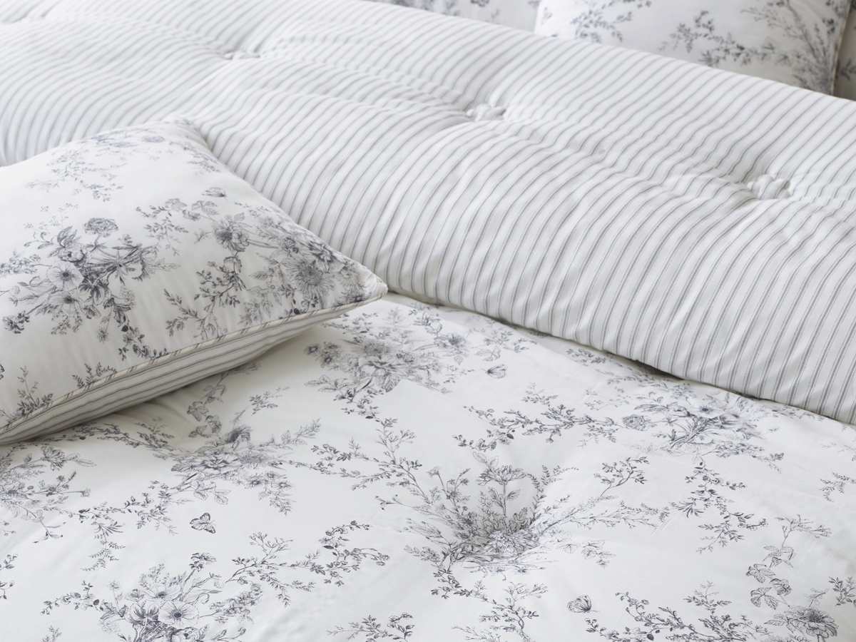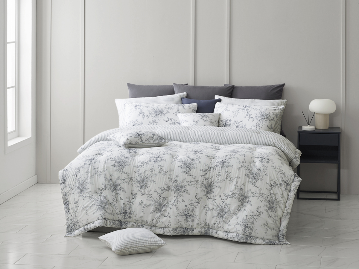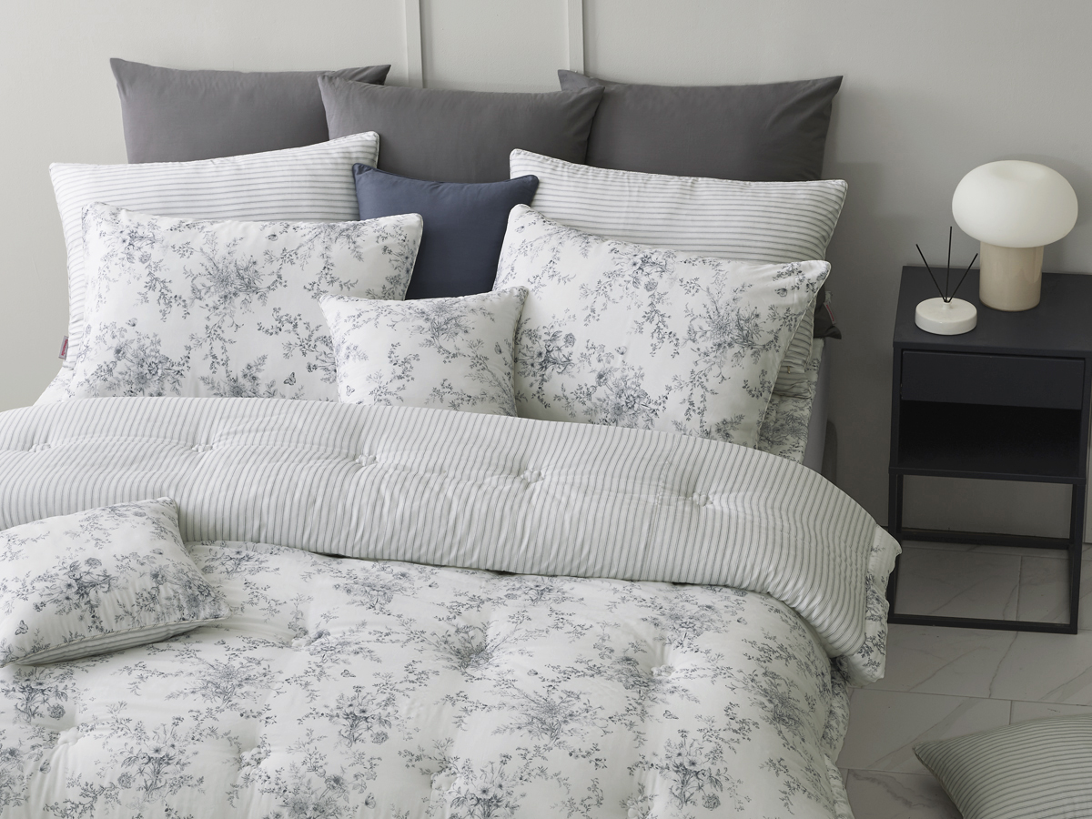 침실에 들어서는 순간, 마치 중세 유럽의 고요한 정원을 거니는 듯한 착각을 불러일으키게 하는 디자인의 침구입니다.