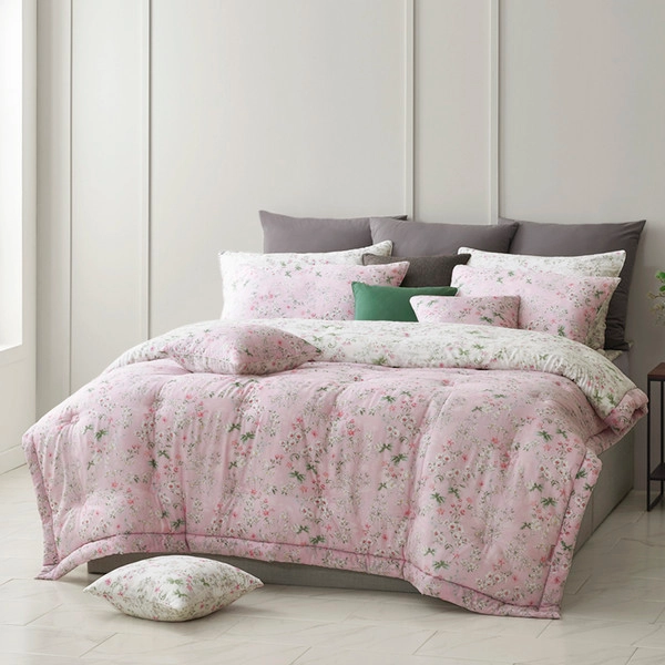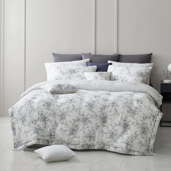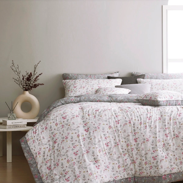 뒷면의 산뜻한 블루 컬러와 조화를 이루어, 유행에 흔들리지 않는 ‘빈티지 로맨틱’ 감성을 완성했습니다. 앞·뒷면을 활용한 연출만으로도 침실 분위기에 은은한 변화를 줄 수 있습니다.