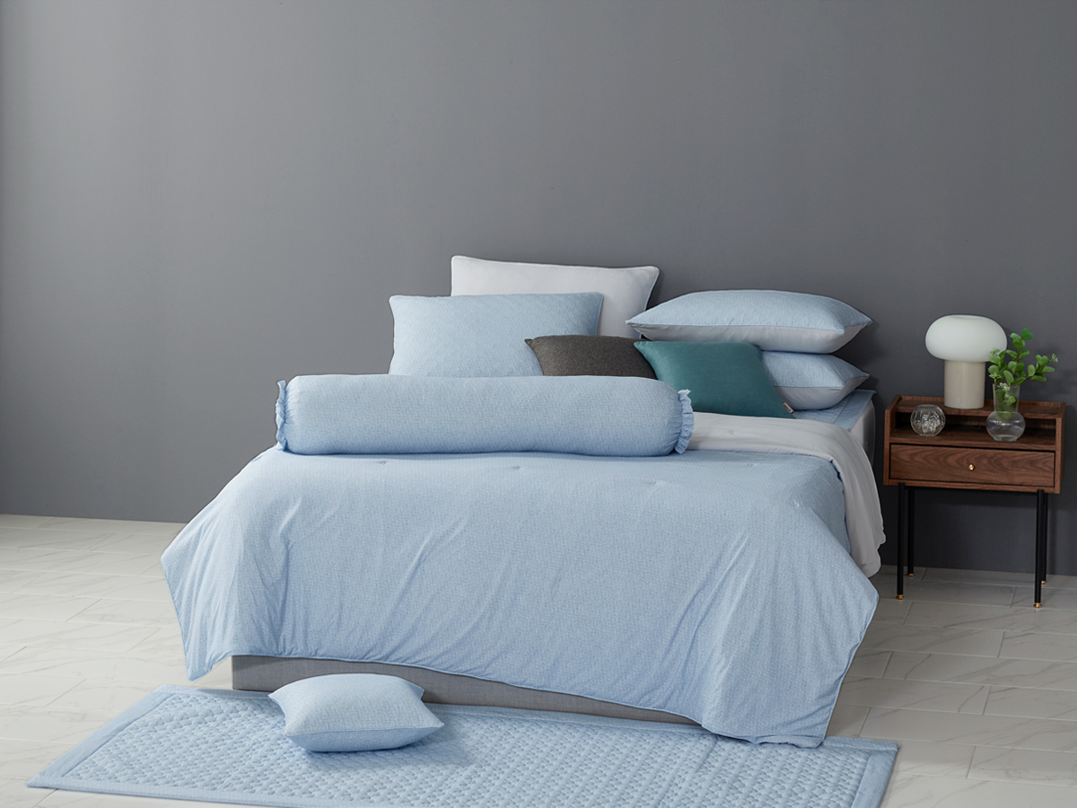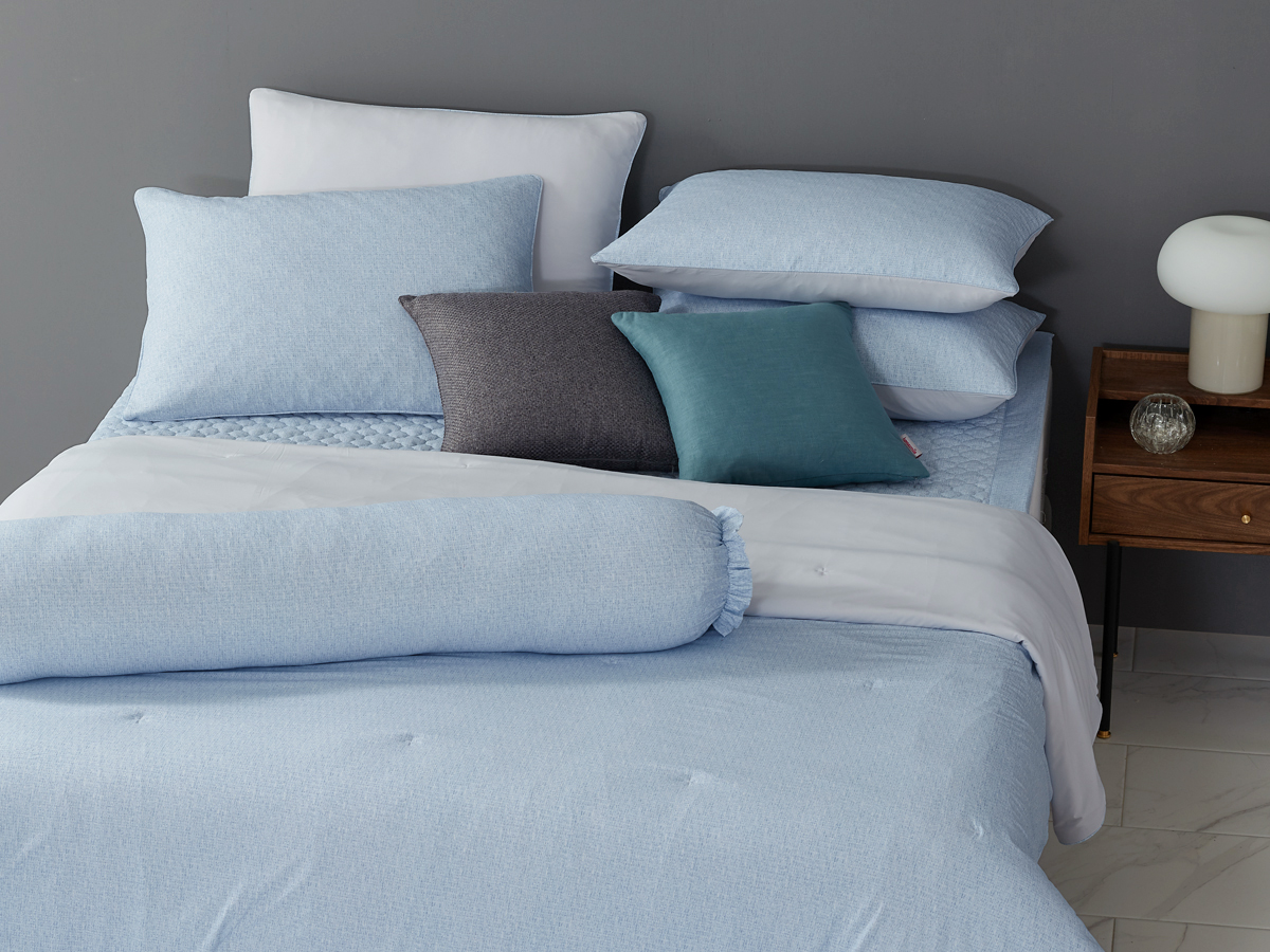 눅눅한 여름밤에도 보송보송함을 유지해 주며, 세련된 슬러브 패턴으로 침실에 시각적인 시원함까지 더해주는 홈스마일의 프리미엄 냉감 이불입니다.